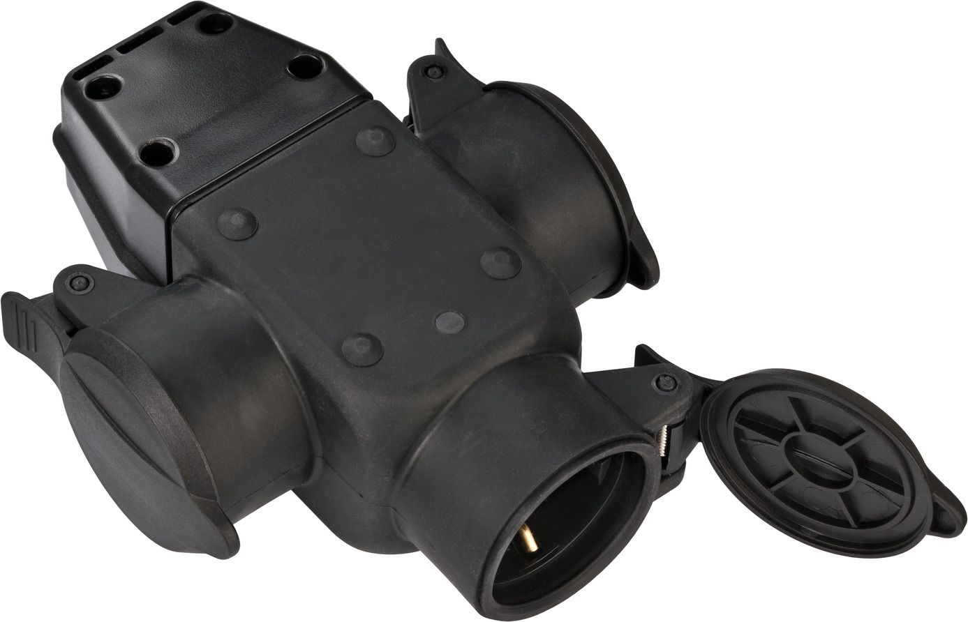 Brennenstuhl 3-szoros érintkezési gumicsatlakozó beltéri és kültéri használatra, beépített felakasztási eszközzel