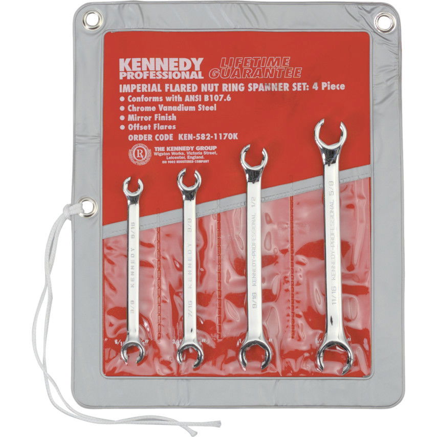 KENNEDY 5/16" - 11/16" professzionális ipari fékcsőkulcs készlet, 4 részes