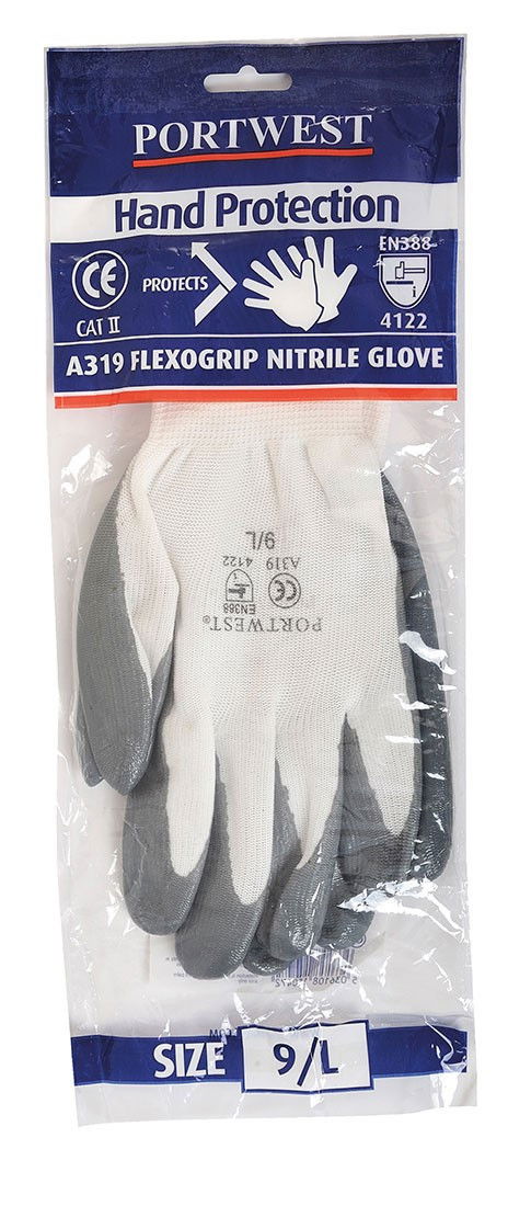 Portwest A319 - Flexo Grip nitril kesztyű, szürke/fehér (kisker kiszerelés)
