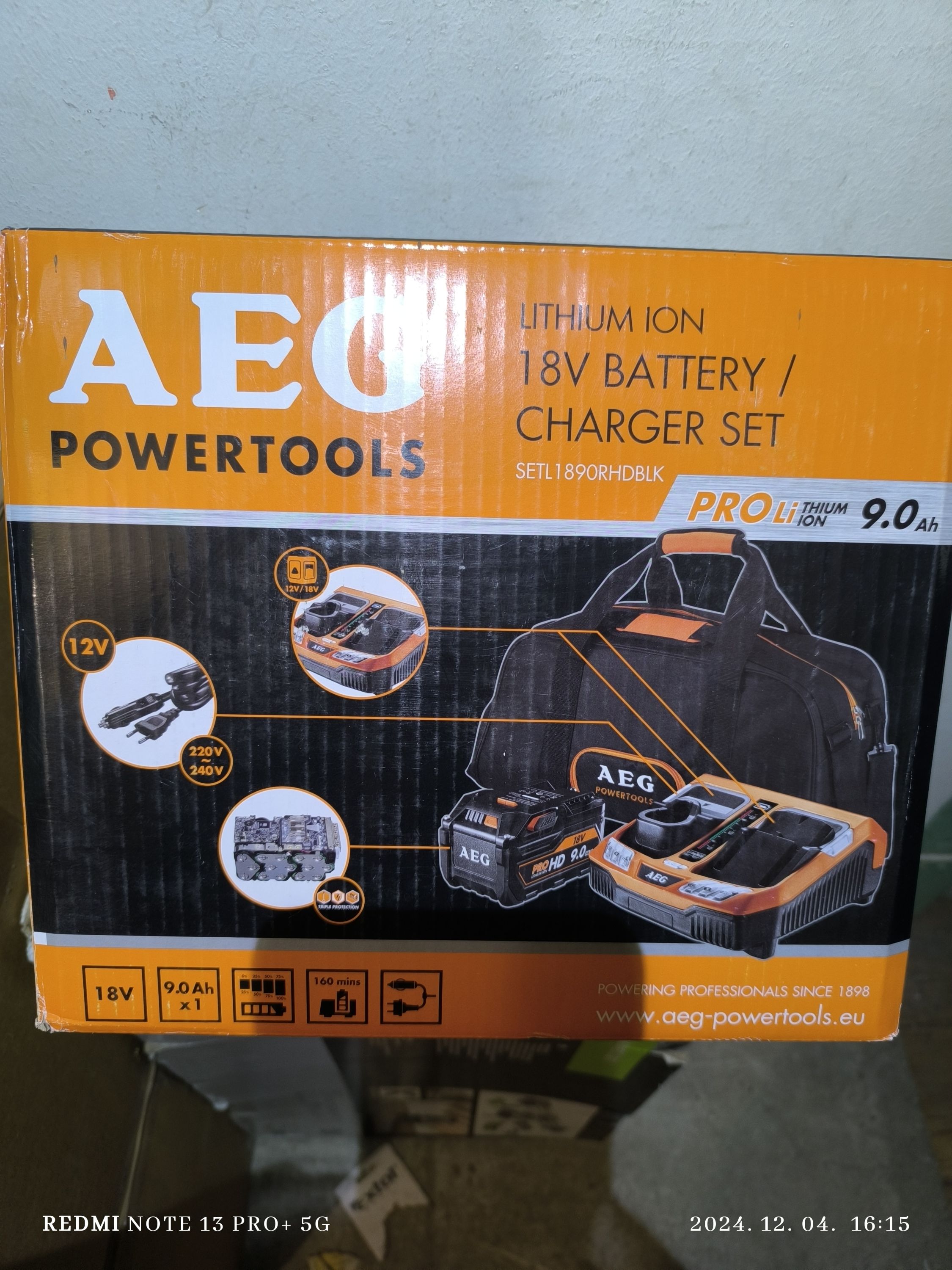 AEG Akkumlátor szett 1db 9.0Ah + töltő + szövettáska