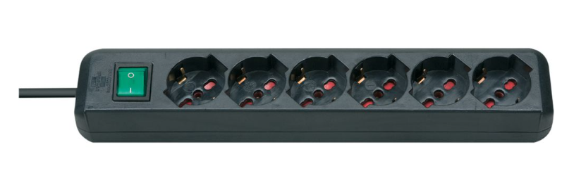Brennenstuhl Elosztó Eco-Line 6x IT L típusú (P17/11) aljzat - IT L típusú (S17) dugó Fekete 1.4m