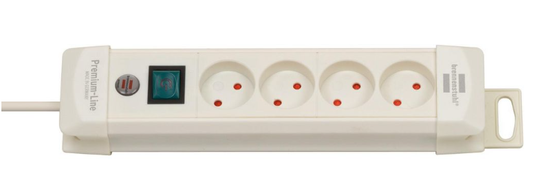Brennenstuhl Elosztó Premium-Line 4x K típusú aljzat, Dánia - DK K típusú dugó Fehér 1.8m