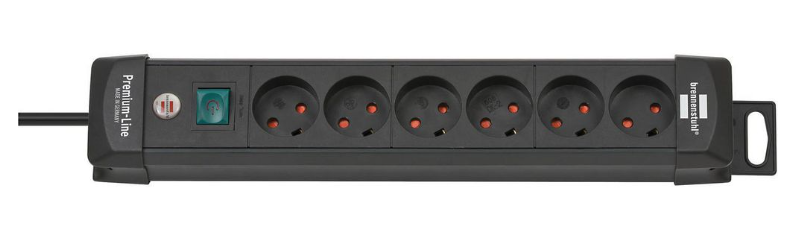 Brennenstuhl Elosztó Premium-Line 6x K típusú aljzat, Dánia - DK K típusú dugó Fekete 3m