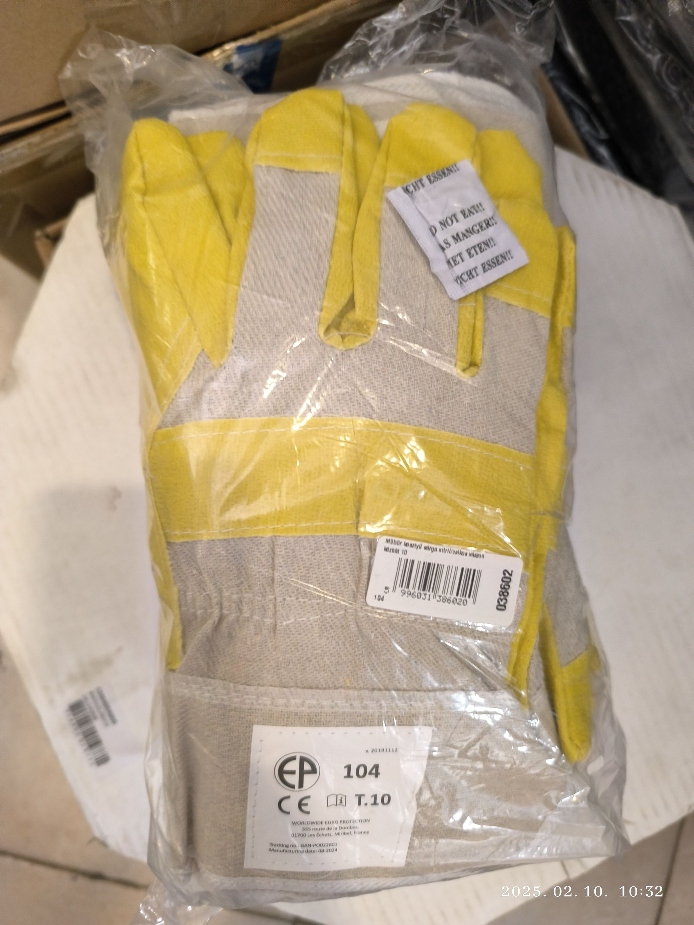 Műbőr kesztyű sárga nitril/csíkos vászonkézhát T10