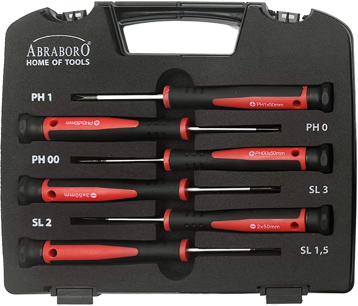 Abraboro Műszerész csavarhúzó készlet (lapos, Phillips), 6 részes