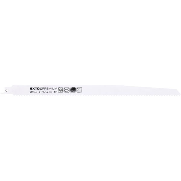 EXTOL Szablyafűrészlap készlet., 3db, Bosch befogás, 300mm, 6T, Bimetal, fa, műanyag, fém anyagokhoz, gyors- és durva vágás